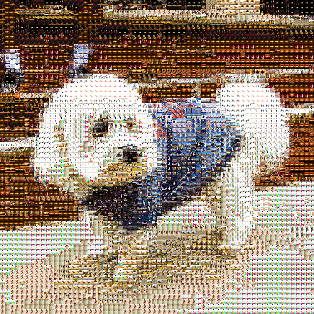 To fully see the mosaic is made up of only other images, the following set of images are increasingly zoomed into the mosaic to show increasing levels of detail: